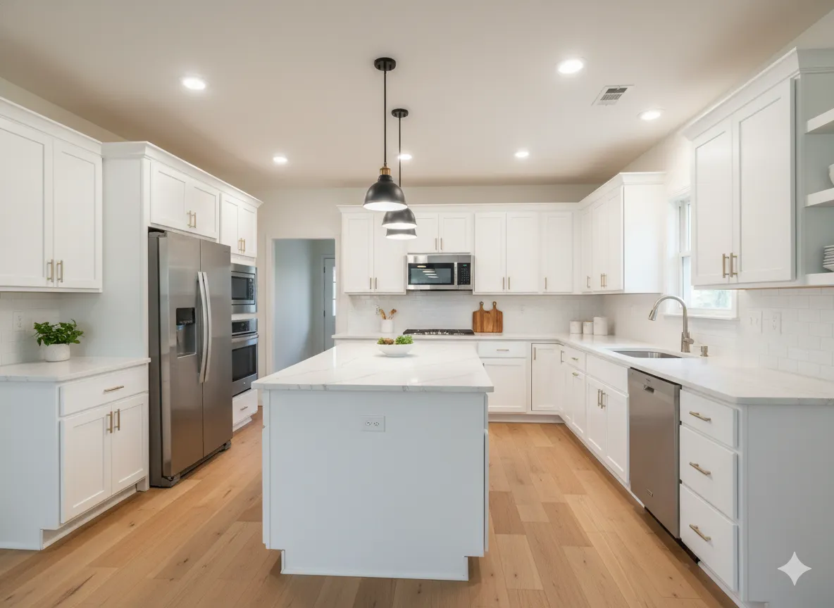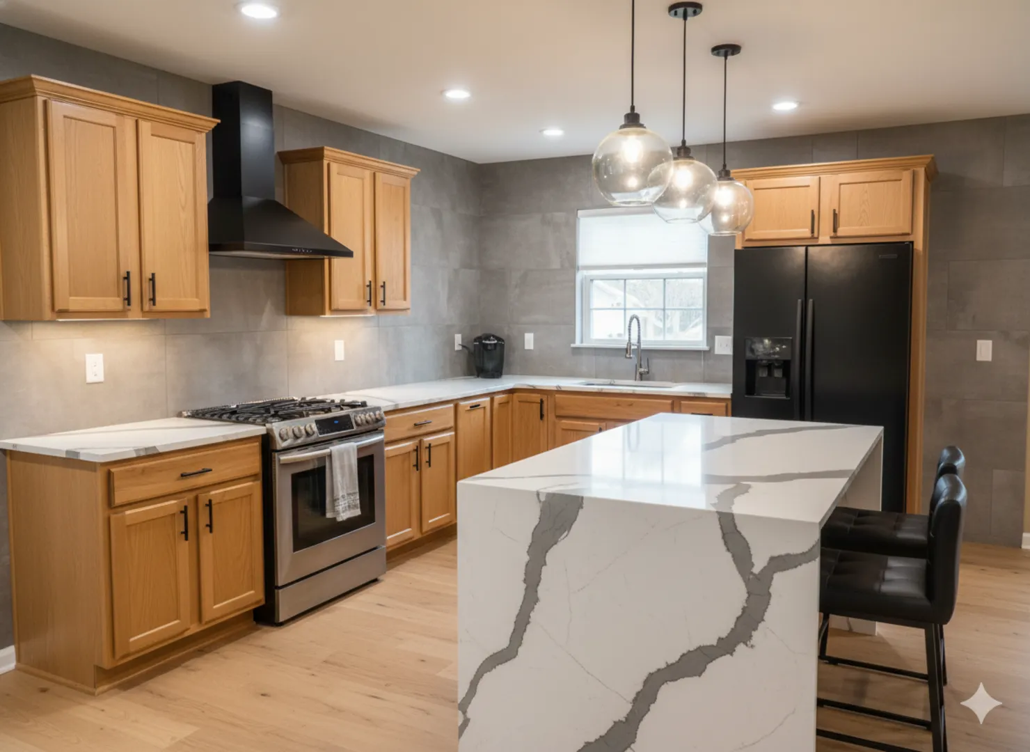 This homeowner loved hosting but hated how their old kitchen forced everyone into cramped corners. The island was outdated, the counters were worn, and the lighting was painfully warm.